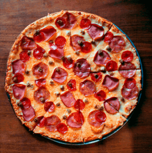 Prepared with a fragrant mixture of herbs, this pizza offers an earthy, calming aroma. The dough absorbs the spices for a balanced taste. Its topping brings a combination of mild and aromatic ingredients. The texture remains light while still filling. A suitable choice for calm, cozy meals.