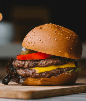 Prepared with gently seasoned ingredients, this burger offers a warm, aromatic profile. The melted layer inside creates a soft, creamy texture. The bun stays fluffy while holding all components together. Its taste remains mild and calming. A fitting option for relaxed dining.